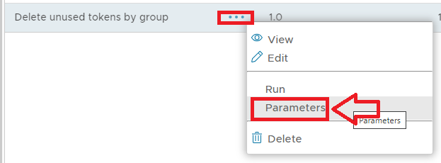 The task parameters are used by the task script to determine which tokens are to be deleted and are edited by left clicking on the context menu of the task and selecting "Parameters";