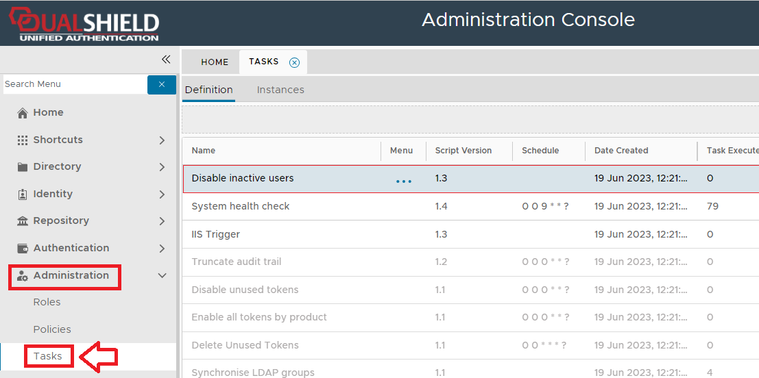 The task can be found by navigating to "Administration | Tasks", then scrolling down to the task "Disable inactive users";