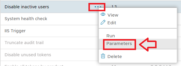 To access the task parameters left click on the context menu of the task then select "Parameters";