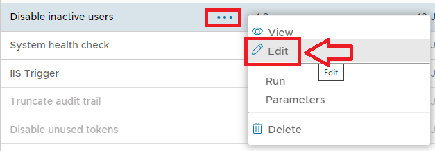 The task parameters are used by the task script to determine which tokens are to be deleted and are edited by left clicking on the context menu of the task and selecting "Parameters";