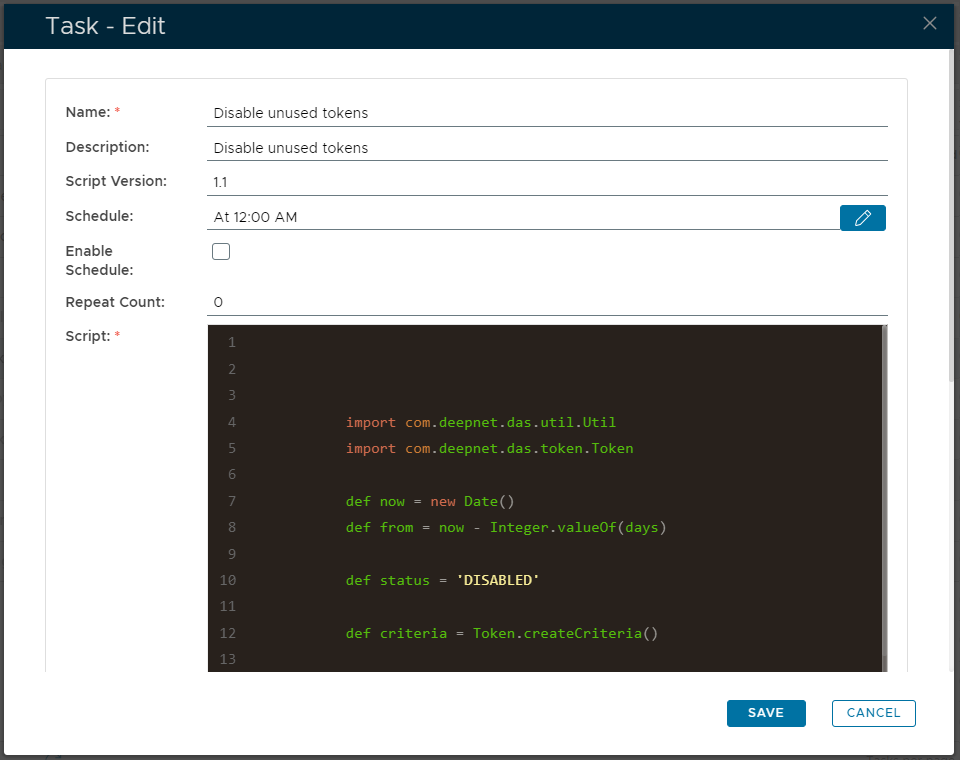The purpose of this task is to disable all tokens that are have been unused for more than the specified number of days.