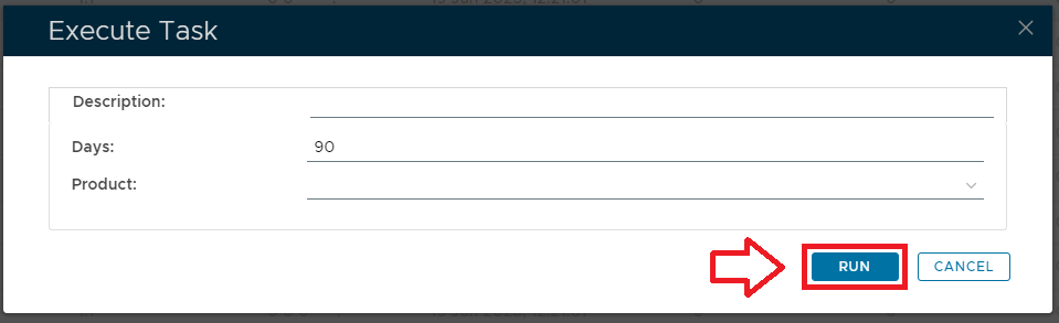 Before manually running the task the system administrator has the opportunity to temporarily replace these default values (the default values will return to their original state after the task has run).