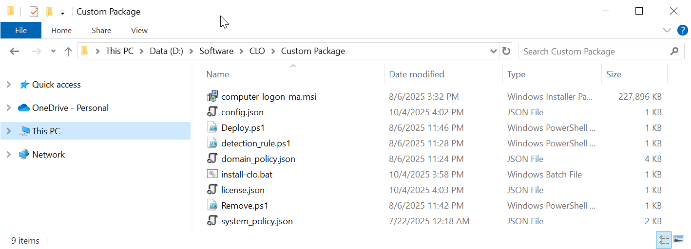 | install-clo.bat | Batch commands for custom installation |