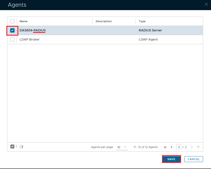 - Complete as per the example screenshot below, selecting your DualShield Radius server and the Application you created in the previous step.