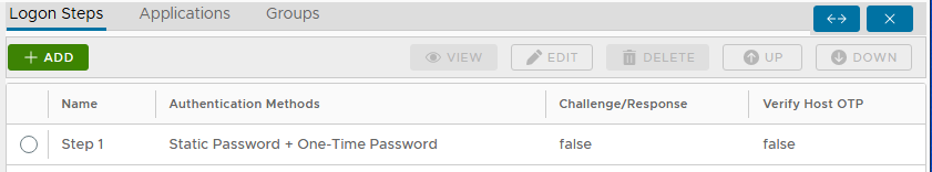 - In the popup window, click the “+ ADD” button to add authentication methods. Such as “Static Password + One-Time Password”: