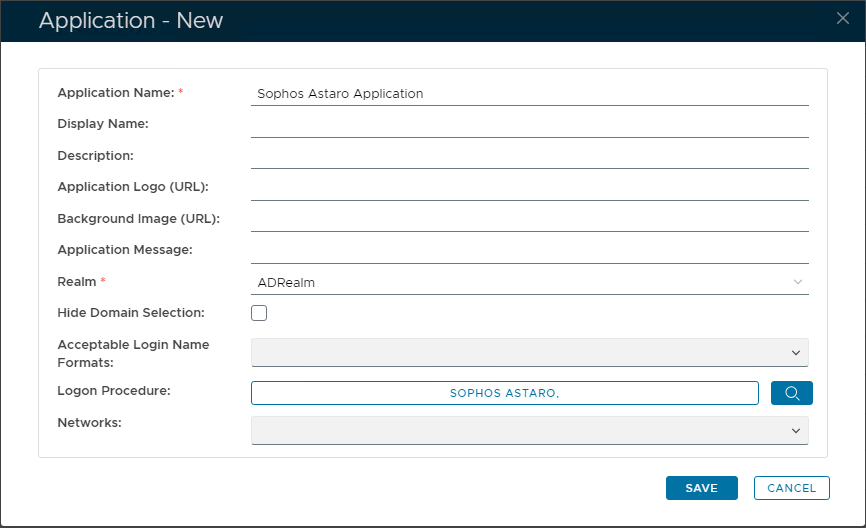 - Click the drop-down on 'Application' and select the Radius Application created earlier.