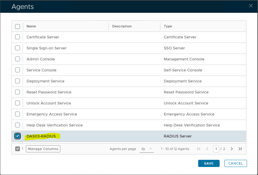 - Click the drop-down on 'Radius Servers' and select the appropriate RADIUS Server. Then "Okay" to confirm.
