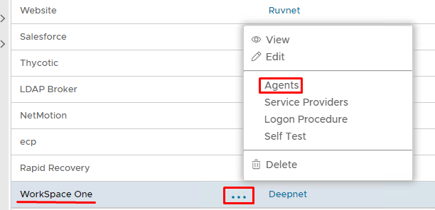 Select the drop down menu corresponding to the Application you will be using and click on Agents.