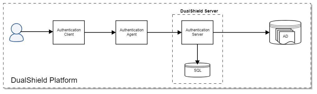 Typically, the DualShield Authentication Server is integrated with the customer's Active Directory