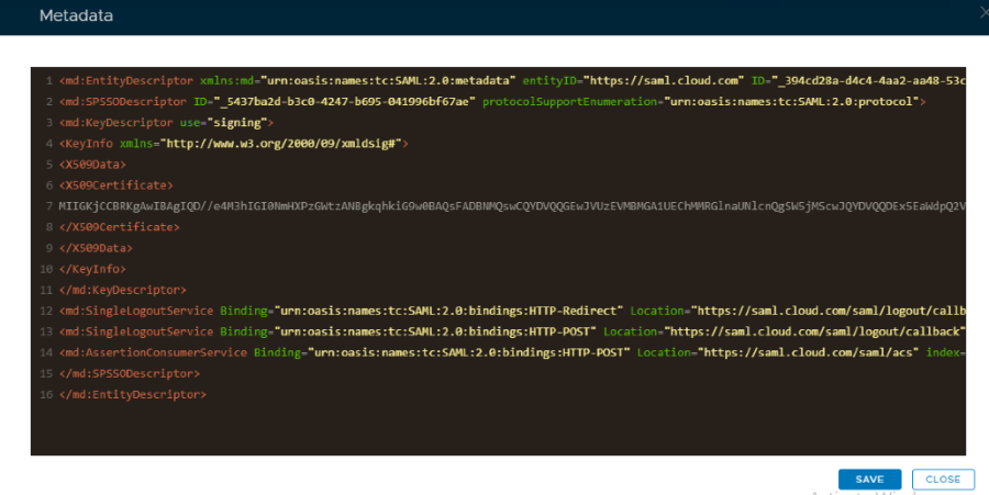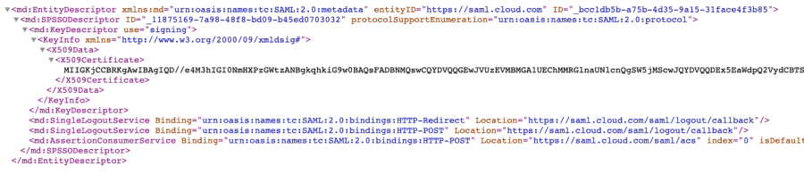 17. Open the SAML XML Metadata file you downloaded from the Citrix Cloud, in a text editor..
