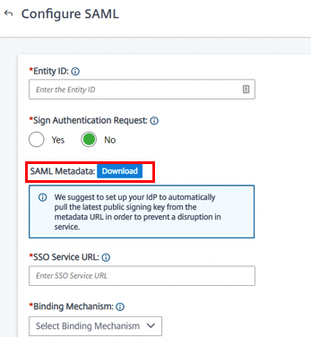 Create a SAML 2.0 Service Provider Configuration for Citrix Workspace.