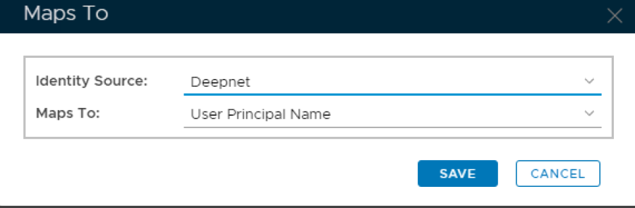 25. Select the identity source that will be used and select User Principal Name from the Maps to drop down list: