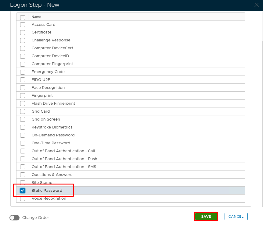 Tick the box next to Static Password. We will use this as the first Logon Step