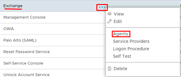 4) Click on the Ellipses corresponding to the Application and Select Agents from the drop down menu