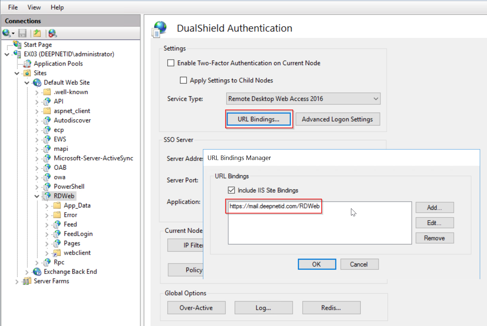 You must configure the DualShield IIS Agent with the correct URIs that the web application is being bound to.