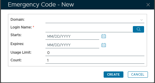 Select the domain of the selected User that the emergency code will apply to.