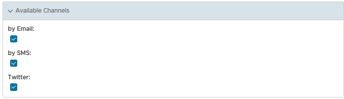 The purpose of the section "Available Channels" is to provide the system administrator with policy settings that specify which communication channels can be used to send messages to users.