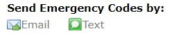 At the prompt "Send Emergency Codes by:" click on either the "Email" or "Text" icons to select how you are the codes are to be sent;