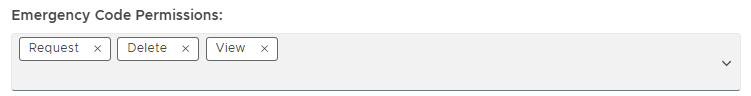 If you are to allow users to generate their own emergency codes from within the Emergency Code Service, then you will need to ensure that this setting includes the option "Request", and can be enabled using the dropdown icon;