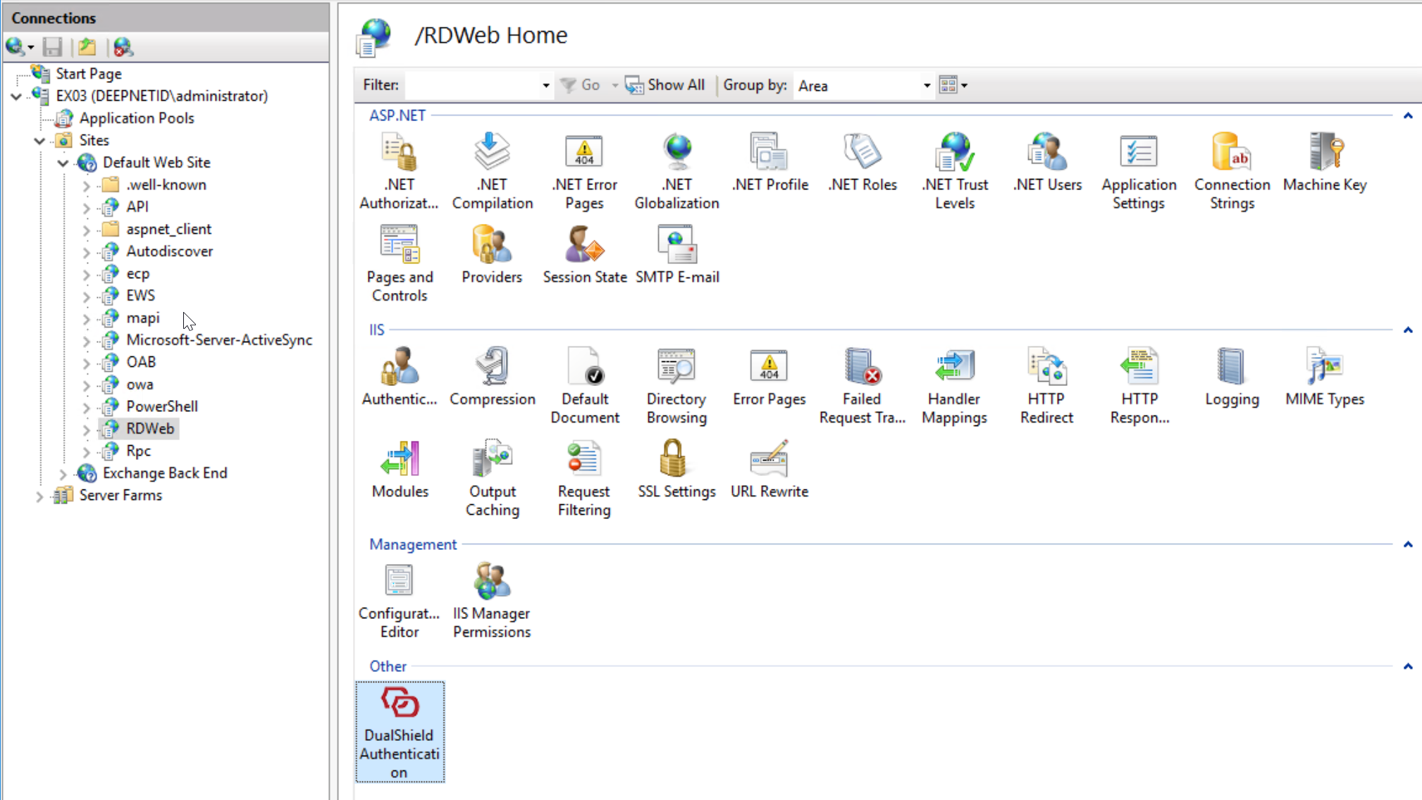 In the IIS Manager console, Navigate to Sites | Default Web Sites | RDWeb