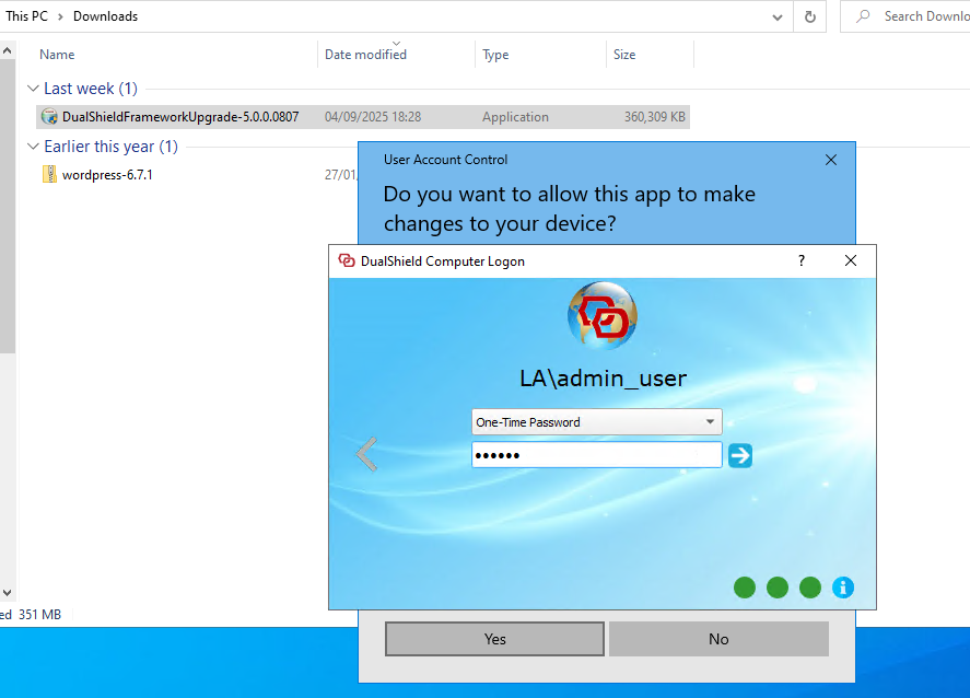 The administrator can then enter their second factor credentials here.  In this example, it is a One-Time Password.