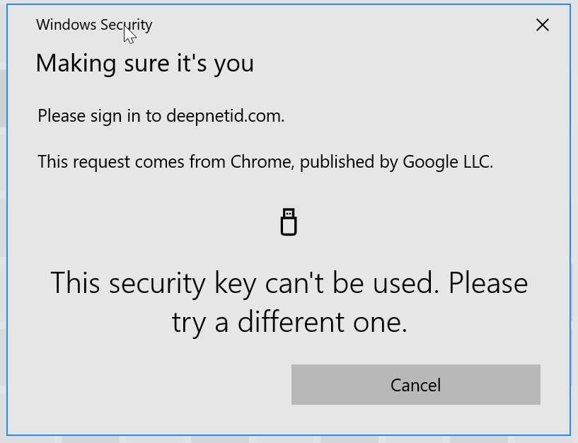 | Chrome | Security Key has not set PIN or Fingerprint | Security Key has PIN set or Fingerprint enrolled |