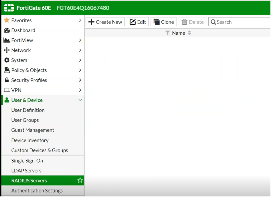 2. Click the User & Device section in the left navigation panel and navigate to Authentication → RADIUS Servers.