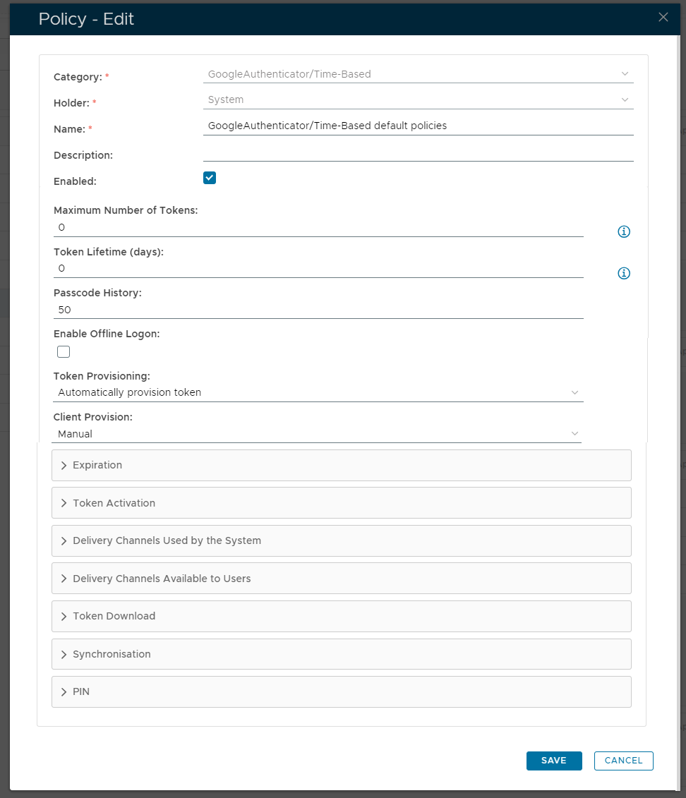 This policy provides options that control Google-Authenticator/Time-Based Authentication (another OATH compliant One-Time Password generator that works in a similar fashion to MobileID);