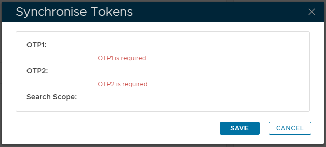 If the system administrator wishes to performing a manual token synchronisation with a larger (or smaller) range of time windows, then a value will need to be supplied in field "Search Scope" (which will be used in preference to this policy setting);