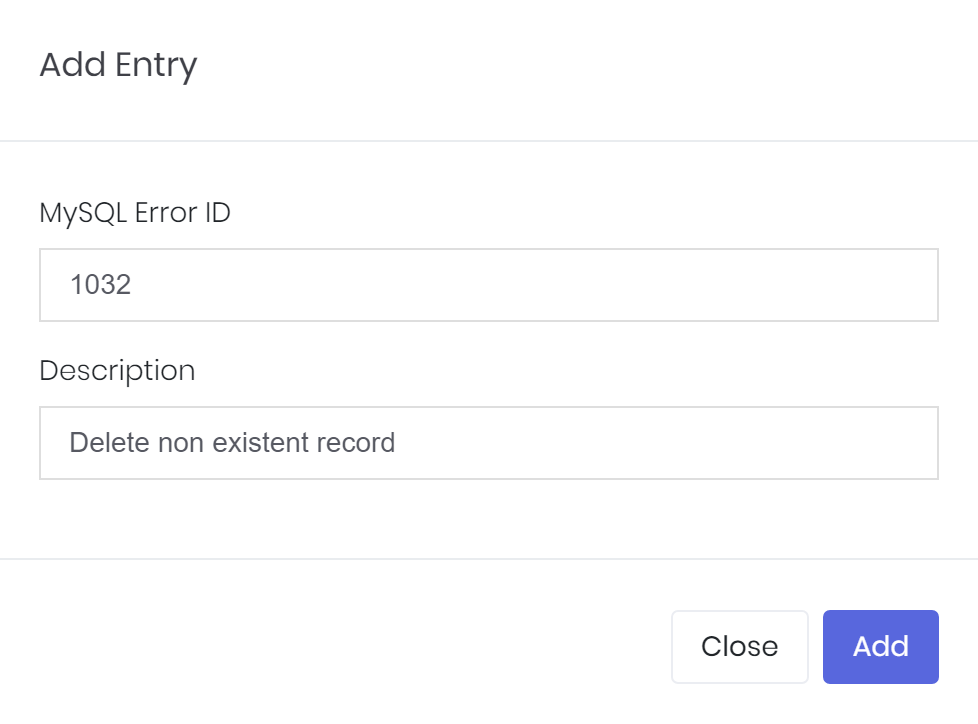 The Data Conflict Automatic Resolution dialog will appear. Here we can add the error code of the error we encountered to mark it as automatically skip-able. Click the Add button and enter the error code with an optional description.