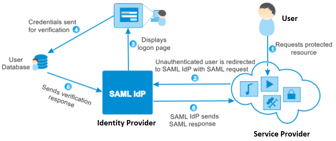 In a SAML verification process, three parties are involved, User, Service Provider and Identity ProviderThe diagrams below illustrate the relationship between them and the data flow.