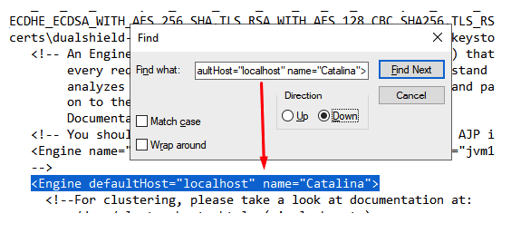 6) Now Search for <Engine defaultHost="localhost" name="Catalina">
