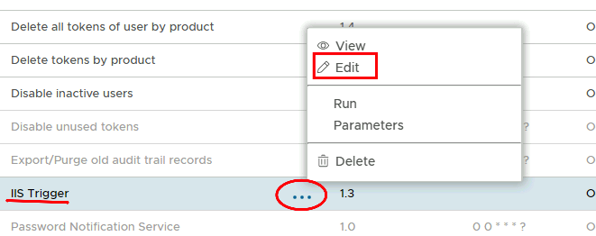 Look at the list for a task called IIS Trigger. Click on the corresponding ellipses and select Edit from the menu