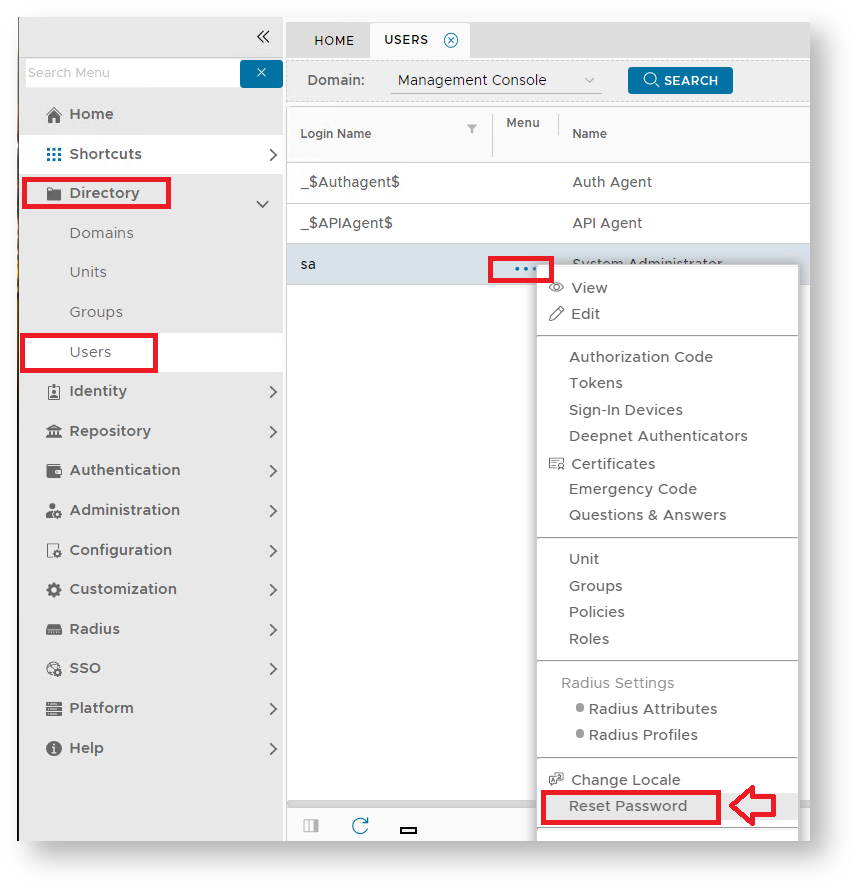 Resetting the SA User Password