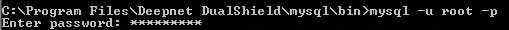 2. Enter the command below to login into MySQL console. You need your MySQL account which was set up while DualShield was initially installed.