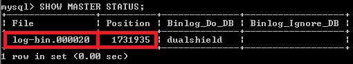 3. Enter the command SHOW MASTER STATUS;