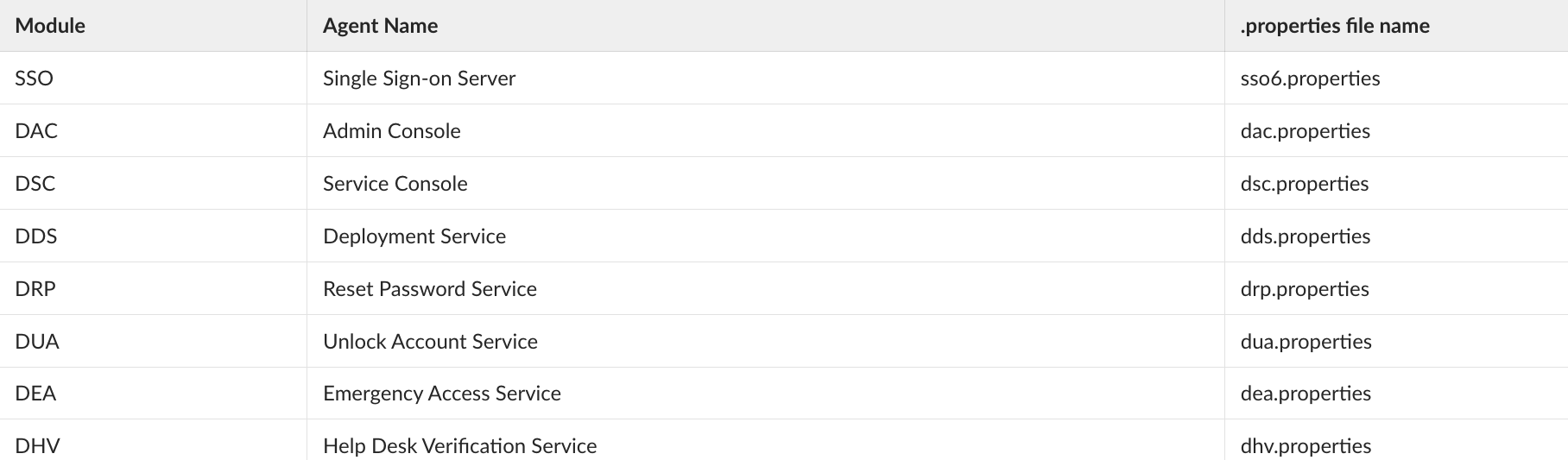 You will need to repeat the process for agents of other modules that you will be using however the template for there corresponding properties file is slightly different from the SSO6.propties.
