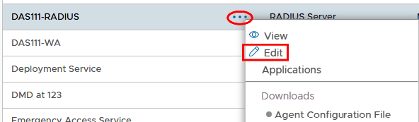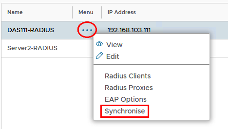 Go to Radius>Radius Server and click on the ellipses corresponding to the Radius server you wish to update.