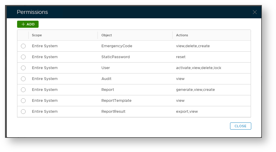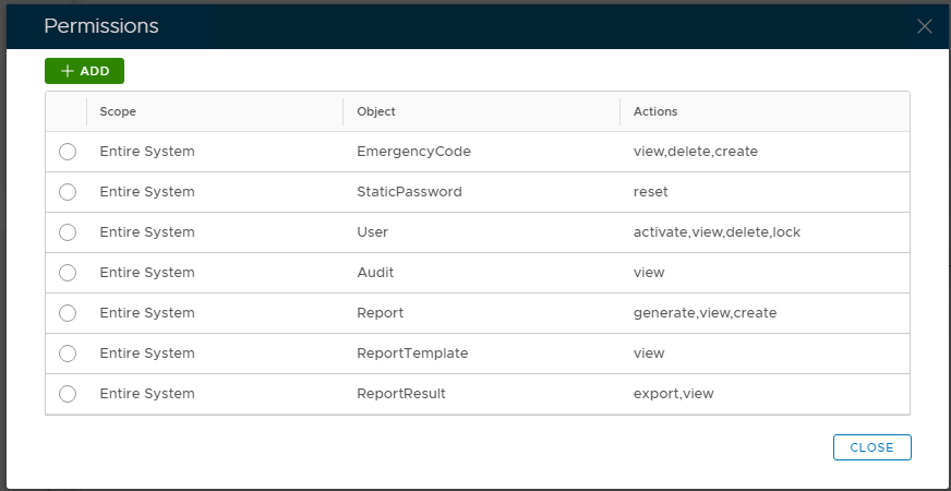 To create a new permit for the role, then click on the "+ ADD" button, and a new window will now open titled "Permit – New";