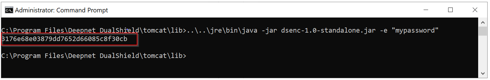 ..\..\jre\bin\java -jar dsenc-1.0-standalone.jar -e "password to be encrypted"