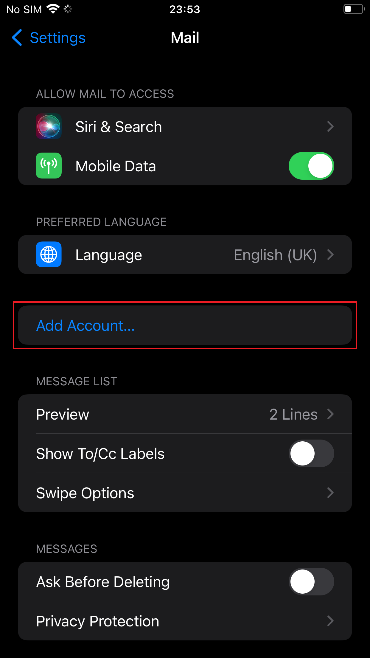 Select "Add Account"