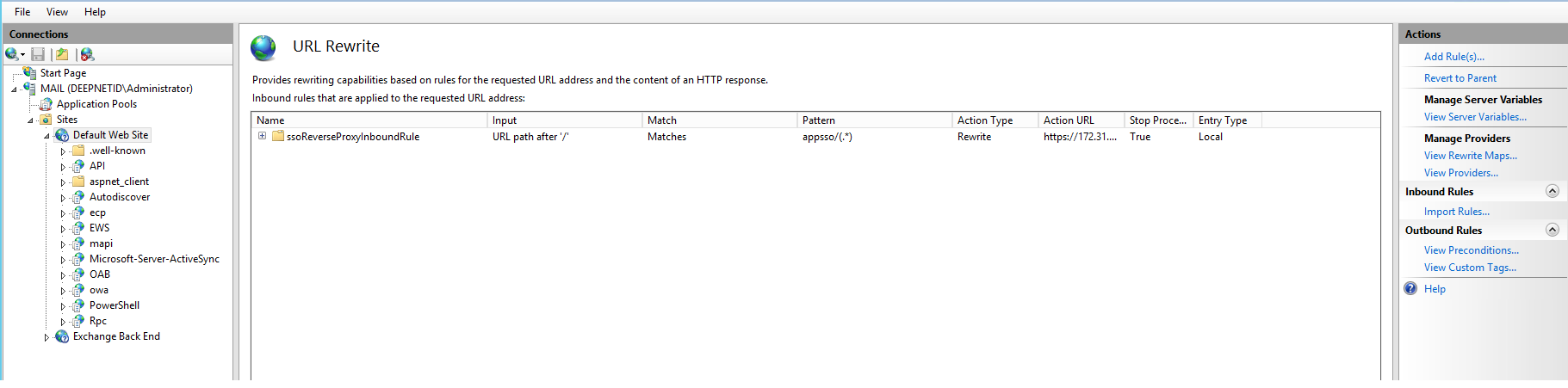 Please note that this rule "ssoReverseProxyInboundRule" might already exist in your system. If so, leave it as is and do not create a new one.