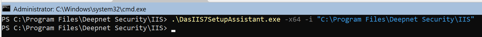 C:\Program Files\Deepnet Security\IIS>DasIIS7SetupAssistant.exe -x64 -i "C:\Program Files\Deepnet Security\IIS"