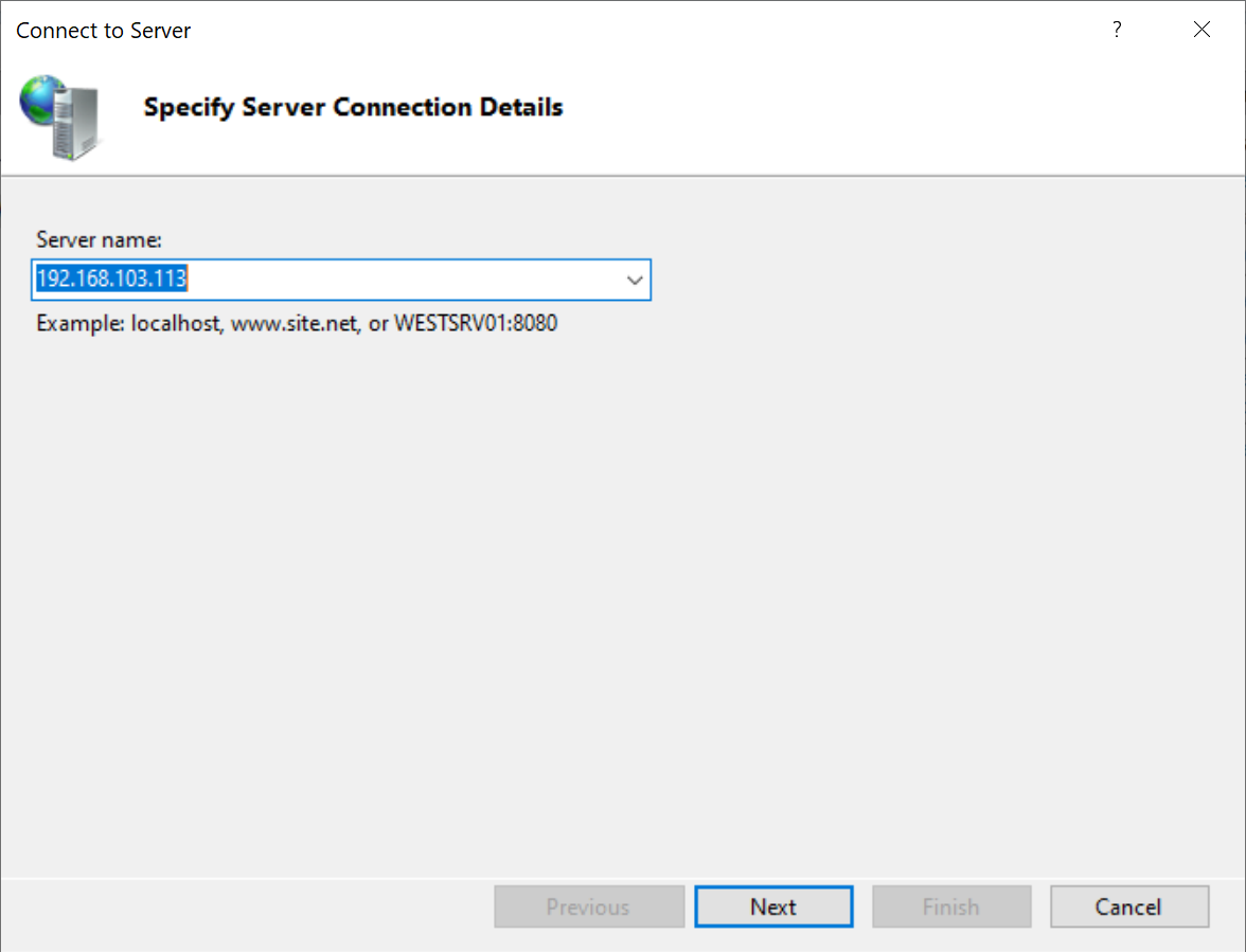 9 - Enter the address of the Server Machine, e.g. 192.168.103.113