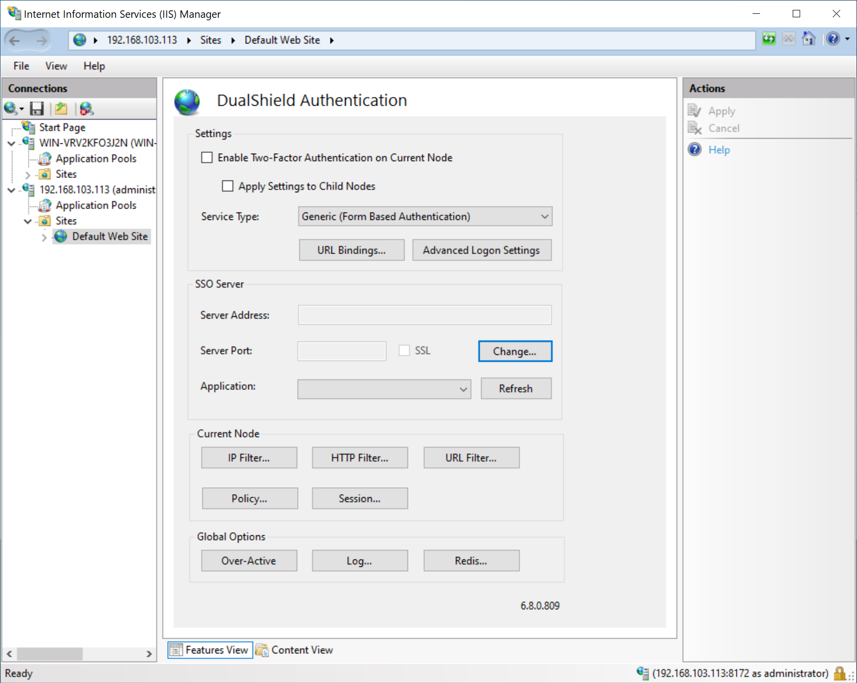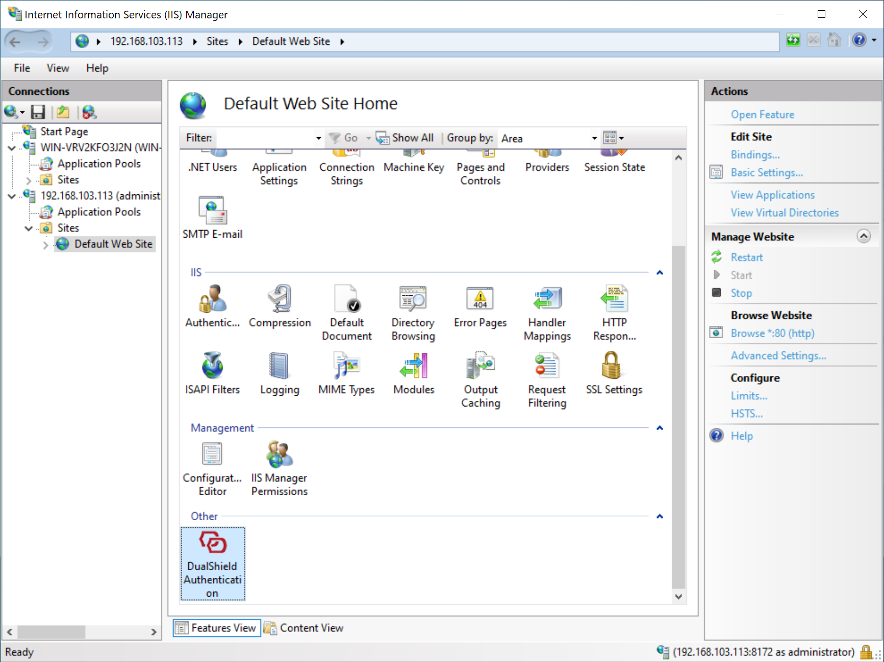 Now, in the IIS Manager, you can access the DualShield IIS Agent on the Server Machine, i.e. 192.168.103.113: