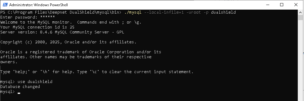 mysql --local-infile=1 -uroot -p dualshield