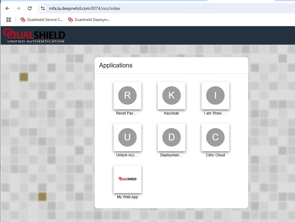 DualShield provides an Index page where customers can publish a list of MFA-enabled applications and users can easily access those applications.