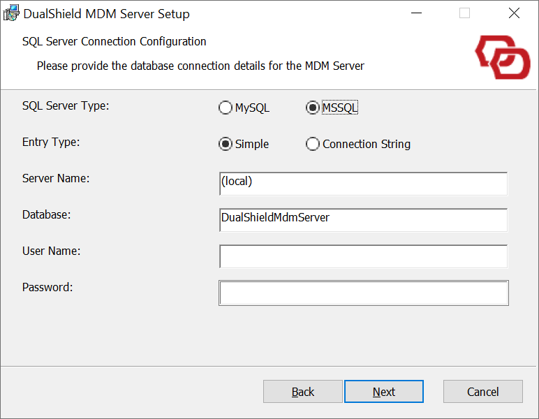 The DualShield DMD Server uses an SQL server as its database storage. It does not include an SQL server in its installer, therefore it requires an external SQL server.