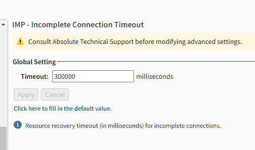 You will then see an IMP - Incomplete Connection Timeout setting on the right hand side