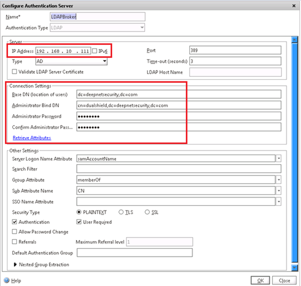 Administrator Bind DN: cn=dualshield,dc=deepnetsecurity,dc=com